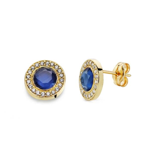 18K PENDIENTES PIEDRA AZUL. 5MM CIRCONITAS