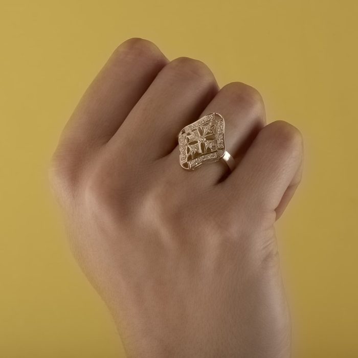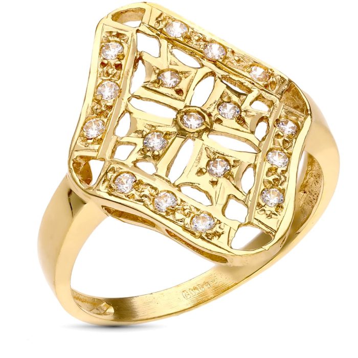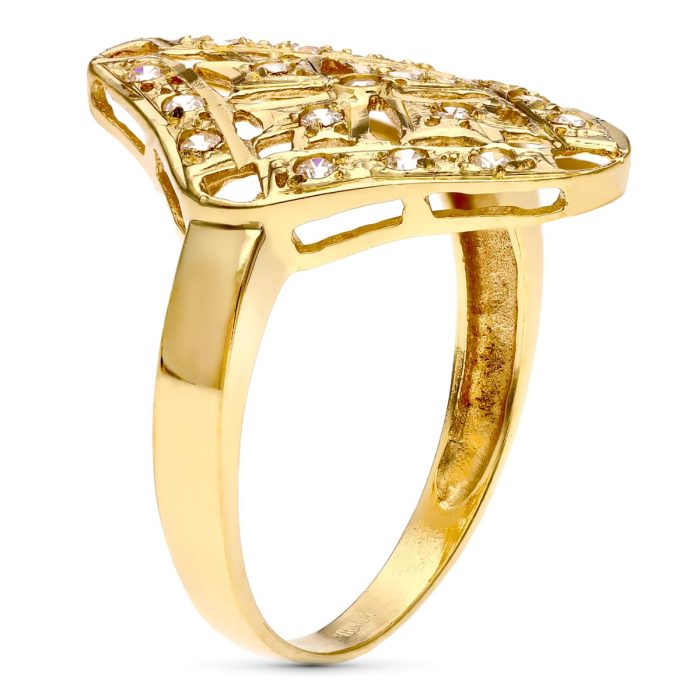 18K SORTIJA ORO AMARILLO CON CIRCONITAS MOTIVO ROMBO 21X15 MM