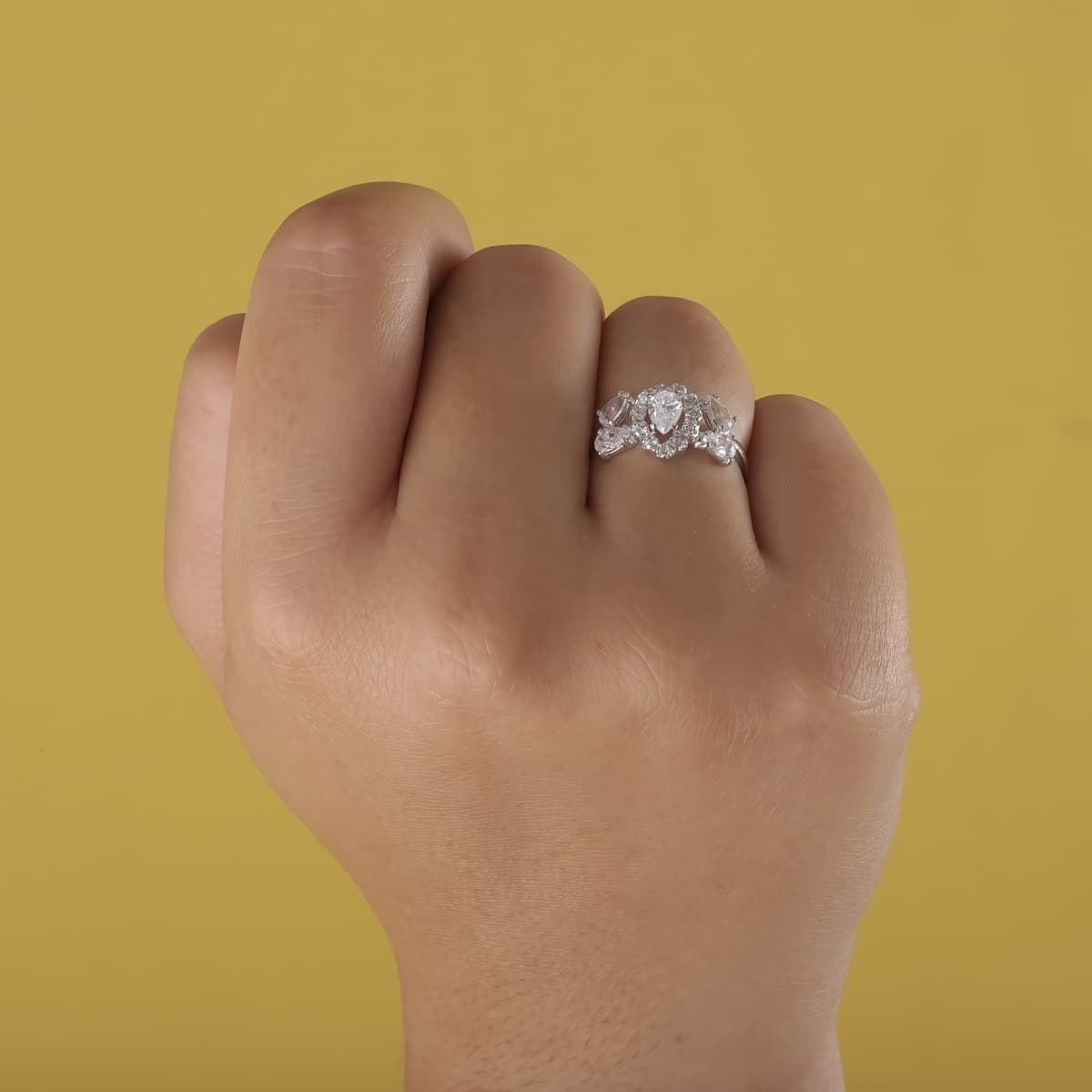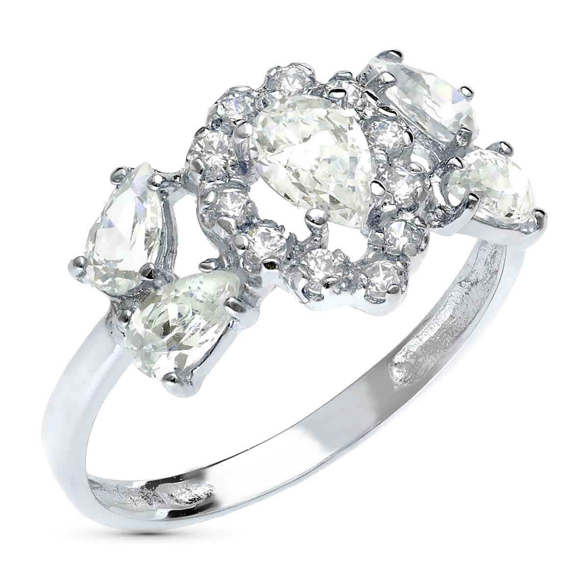 18K SORTIJA ORO BLANCO JUEGO NOVIA CIRCONITA PERA ANCHO TOTAL 11 MM