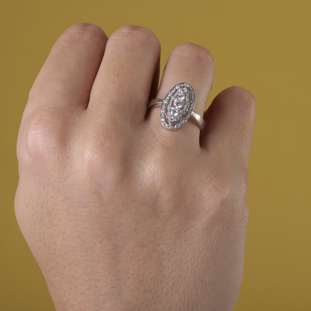 18K SORTIJA ORO BLANCO JUEGO NOVIA CIRCONITAS MOTIVO 18X10 MM