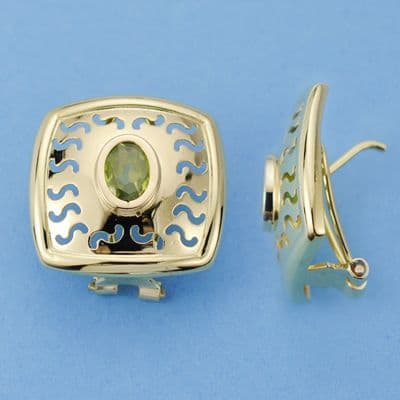 18K PENDIENTES ORO AMARILLO PIEDRA OVAL CALADO