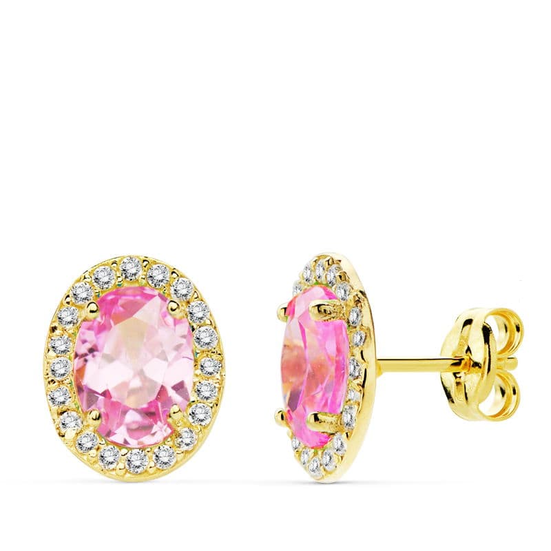 18K PENDIENTES ORO AMARILLO PIEDRA ROSA OVAL CIRCONITAS 10X8 MM