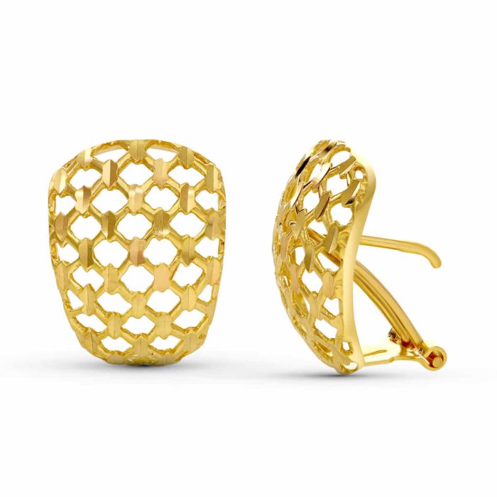 18K PENDIENTES ORO AMARILLO TALLADOS 18X13 MM CIERRE OMEGA