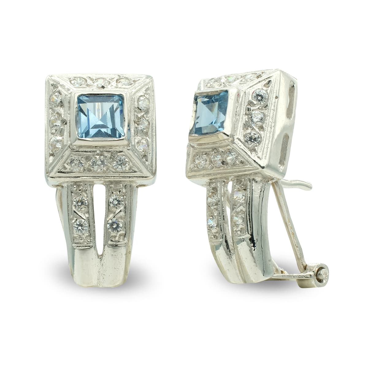 18K PENDIENTES ORO BLANCO PIEDRA AZUL CIRONITAS 19X10 MM