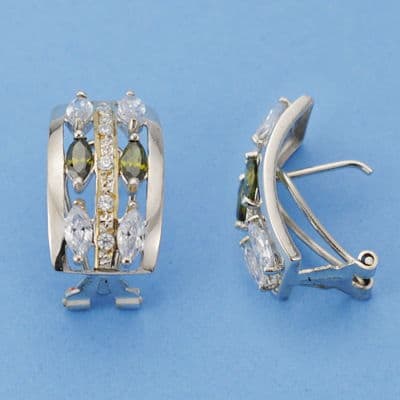 18K PENDIENTES ORO BLANCO PIEDRAS 18X10 MM