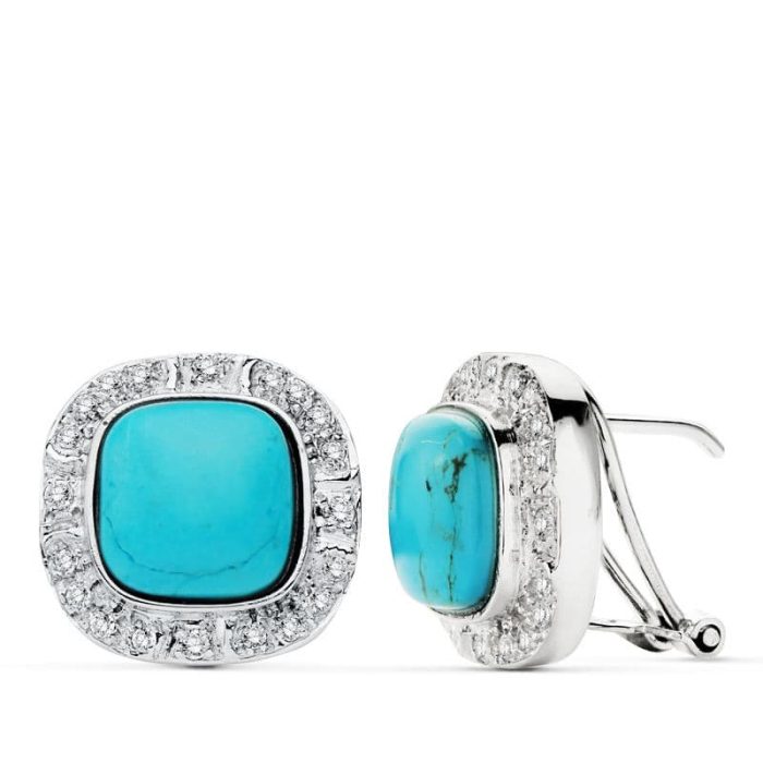 18K PENDIENTES TURQUESA 10 MM Y CIRCONITAS OMEGA 16 MM