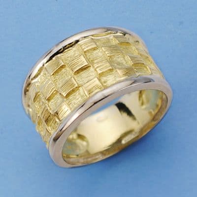 18K SORTIJA BICOLOR CUADRADITOS.