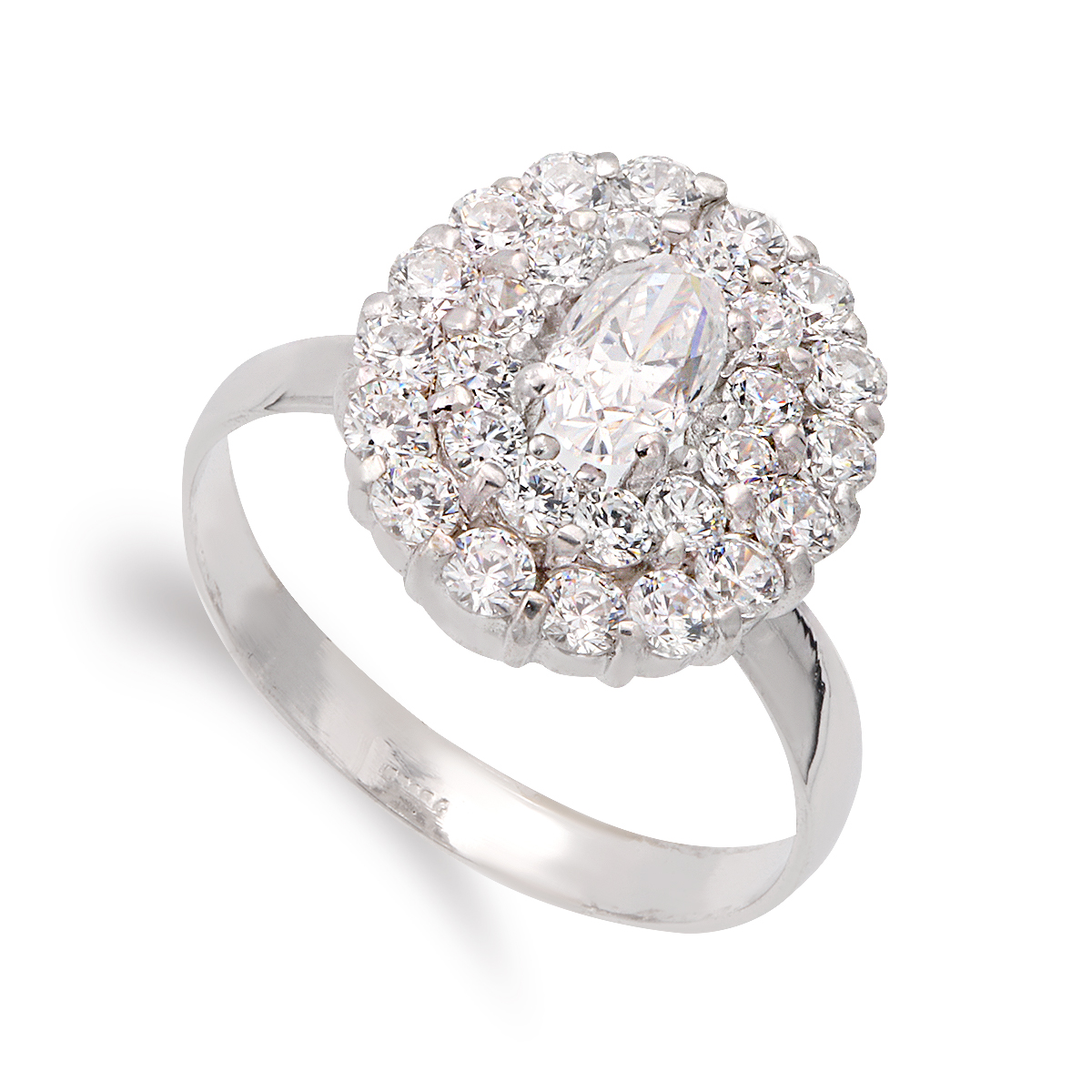 18K SORTIJA ORO BLANCO PIÑA DE CIRCONITAS 14X12 MM