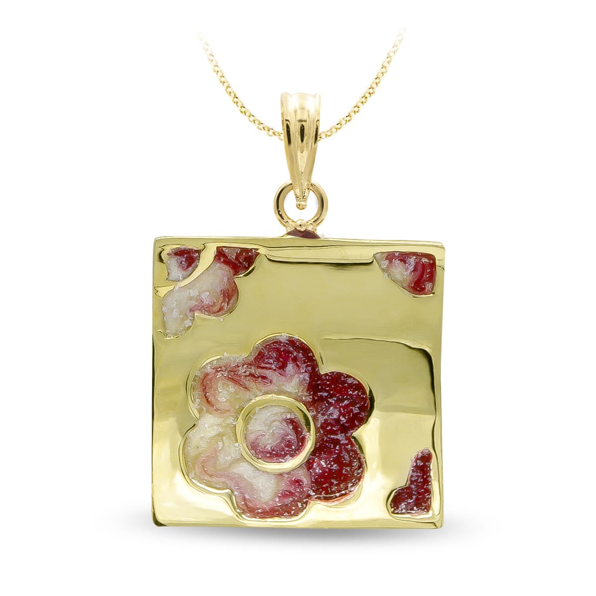 18K COLGANTE ORO AMARILLO CUADRADO ESMALTE 17X17 MM