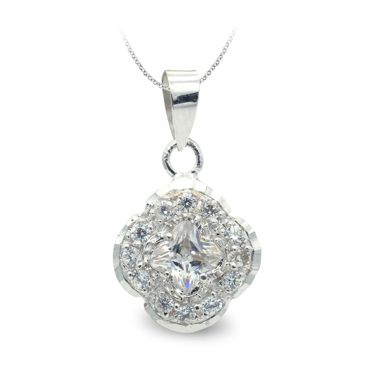 18K COLGANTE ORO BLANCO FLOR CIRCONITAS 17X13 MM