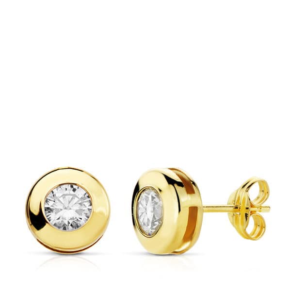 18K PENDIENTES ORO AMARILLO CHATON CIRCONITA 8.5 MM