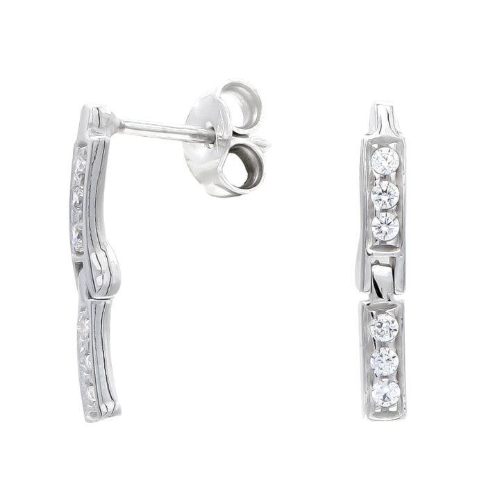18K PENDIENTES ORO BLANCO LARGO Y CIRCONITAS