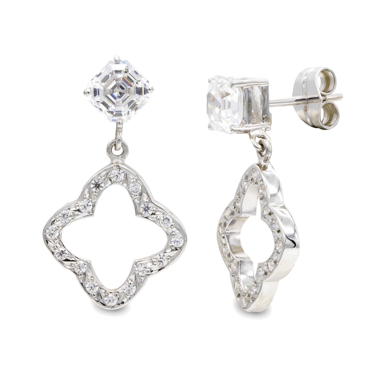 18K PENDIENTES ORO BLANCO LARGOS CIRCONITAS 27X15 MM