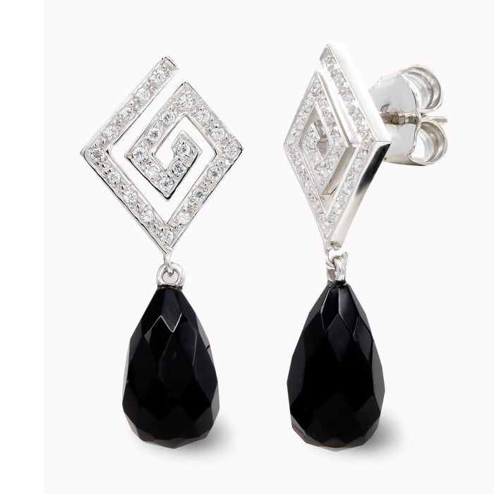 18K PENDIENTES ORO BLANCO ONIX. 38X15 MM