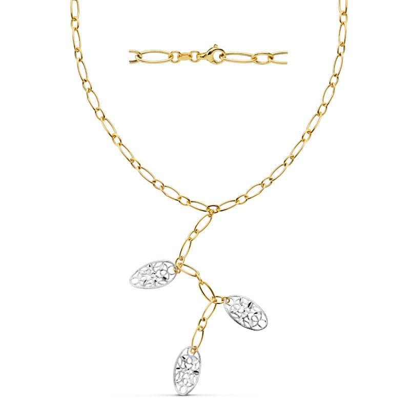 18K GARGANTILLA BICOLOR HUECA 42CM MOTIVOS OVALES
