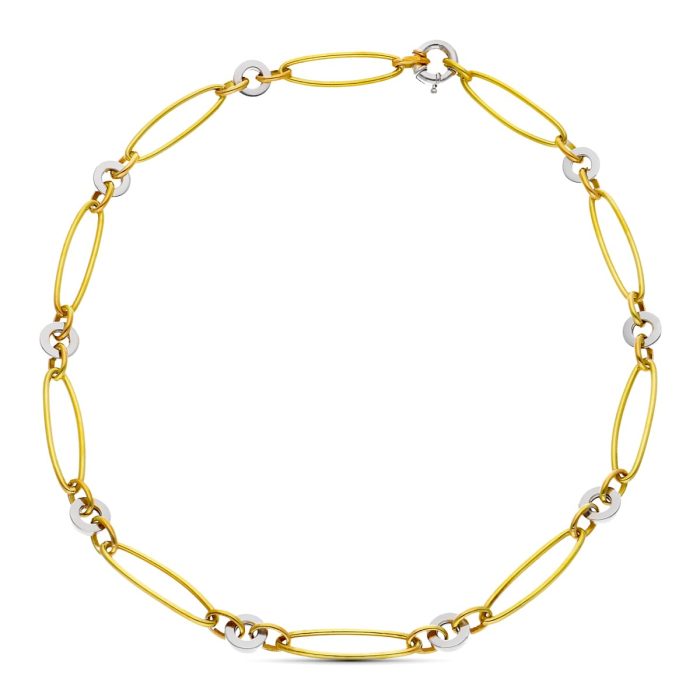18K GARGANTILLA ORO BICOLOR ESLABONES OVALES Y CIRCULOS