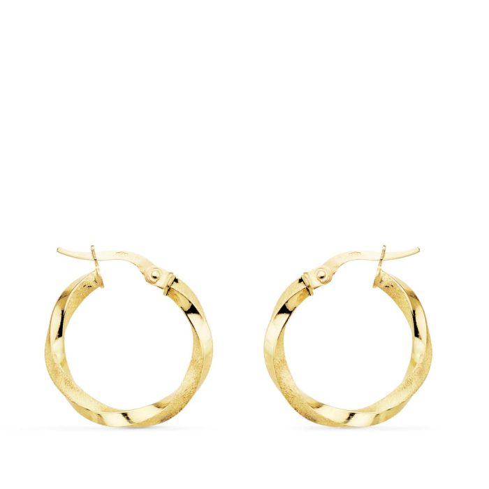 18K AROS ORO AMARILLO HUECOS RETORCIDOS MATE Y BRILLO 20X2.5 MM