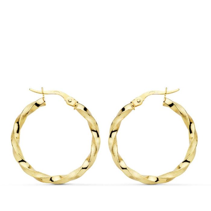 18K AROS ORO AMARILLO HUECOS RETORCIDOS MATE Y BRILLO 25X2.5 MM