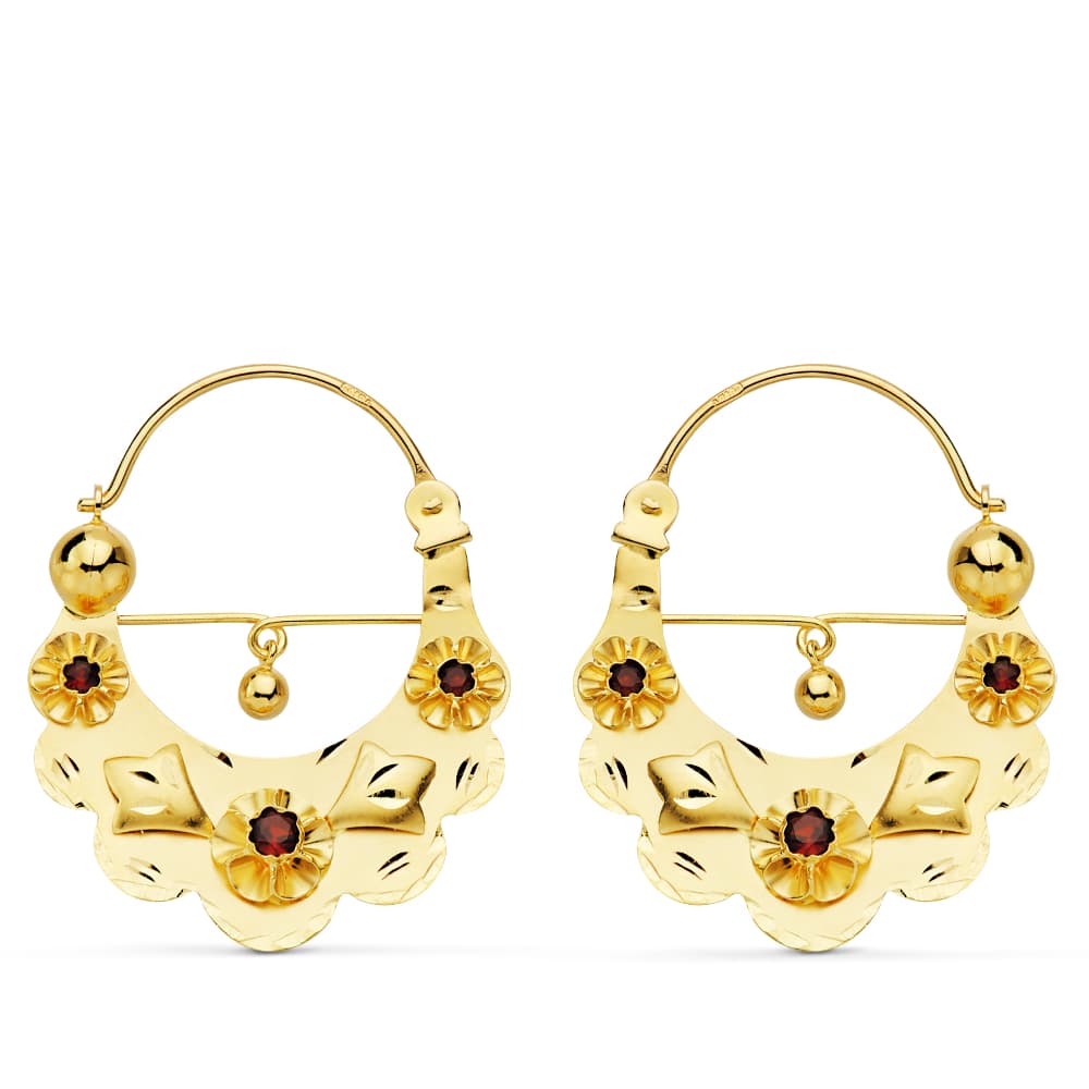 18K AROS ORO AMARILLO MORUNOS 3 CIRCONITAS 34X27 MM