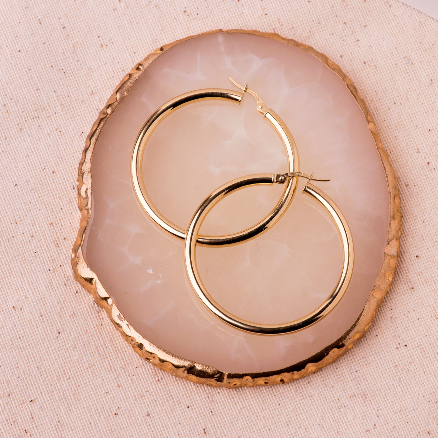 18K AROS ORO AMARILLO REDONDOS HUECOS 41X3 MM