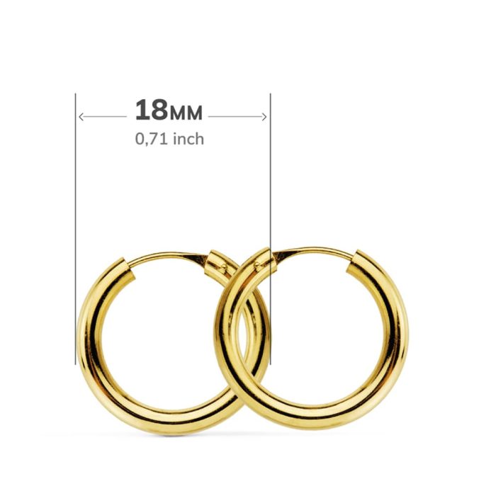 18K AROS ORO AMARILLO REDONDOS LISOS LIGEROS 18X2.5 MM