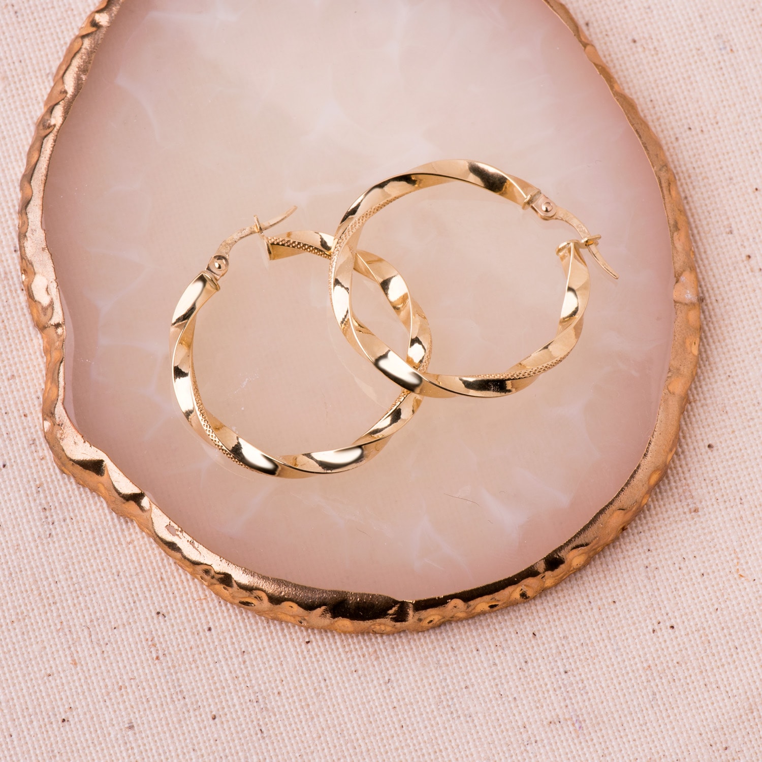 18K AROS ORO AMARILLO RELIADOS HILO 30X3 MM
