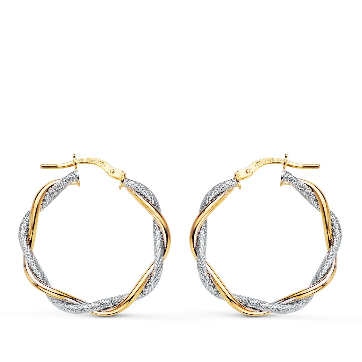 18K AROS ORO BICOLOR HUECOS DOBLES LISOS Y DIAMANTADOS 25 X 3 MM