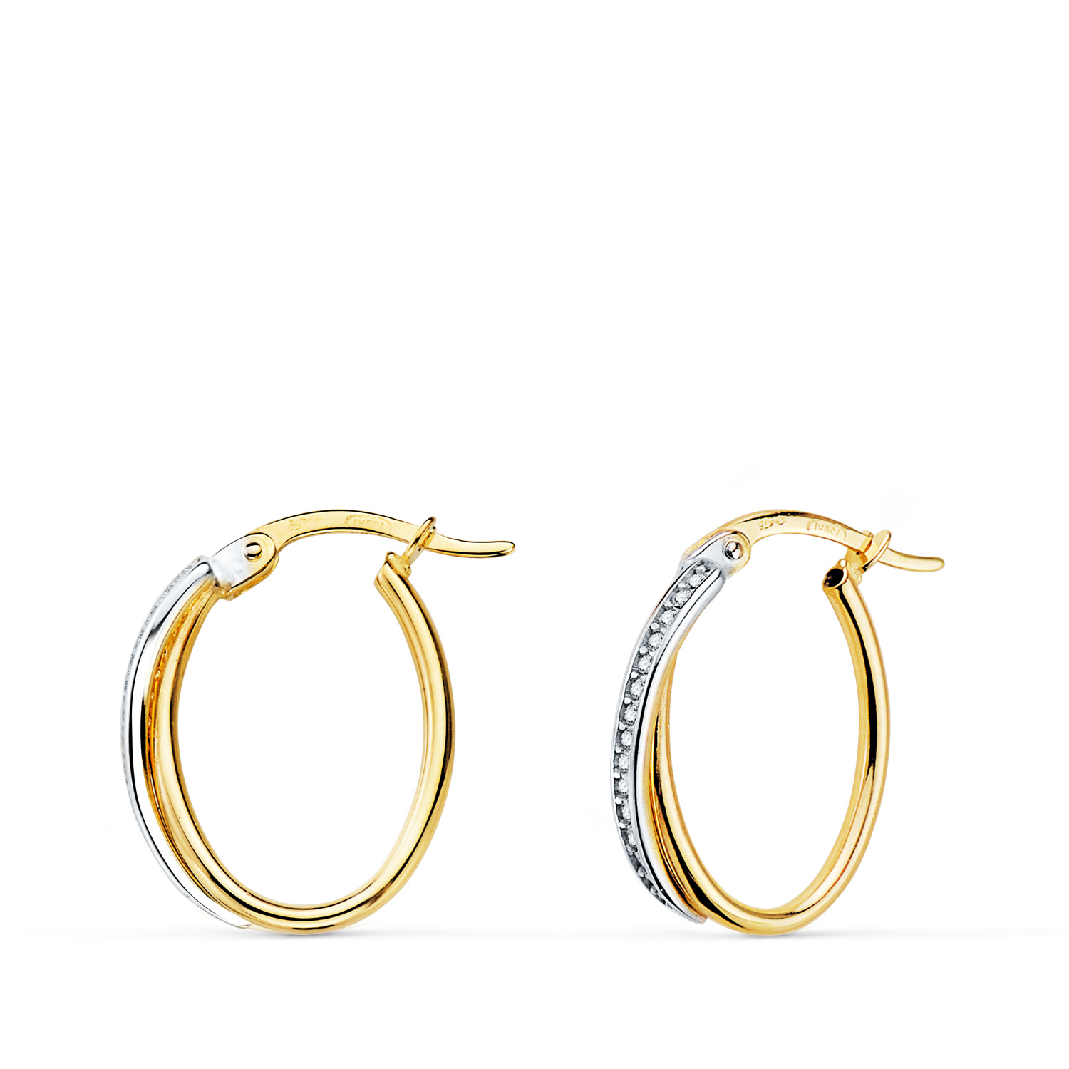 18K AROS ORO BICOLOR HUECOS OVAL DOBLE BANDA Y CIRCONITAS 15 X 14 MM. GROSOR: 1,5MM