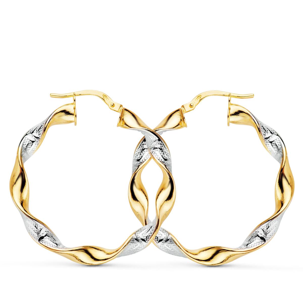 18K AROS ORO BICOLOR HUECOS TRENZADOS CON GRECA Y LISOS 33 X 4 MM