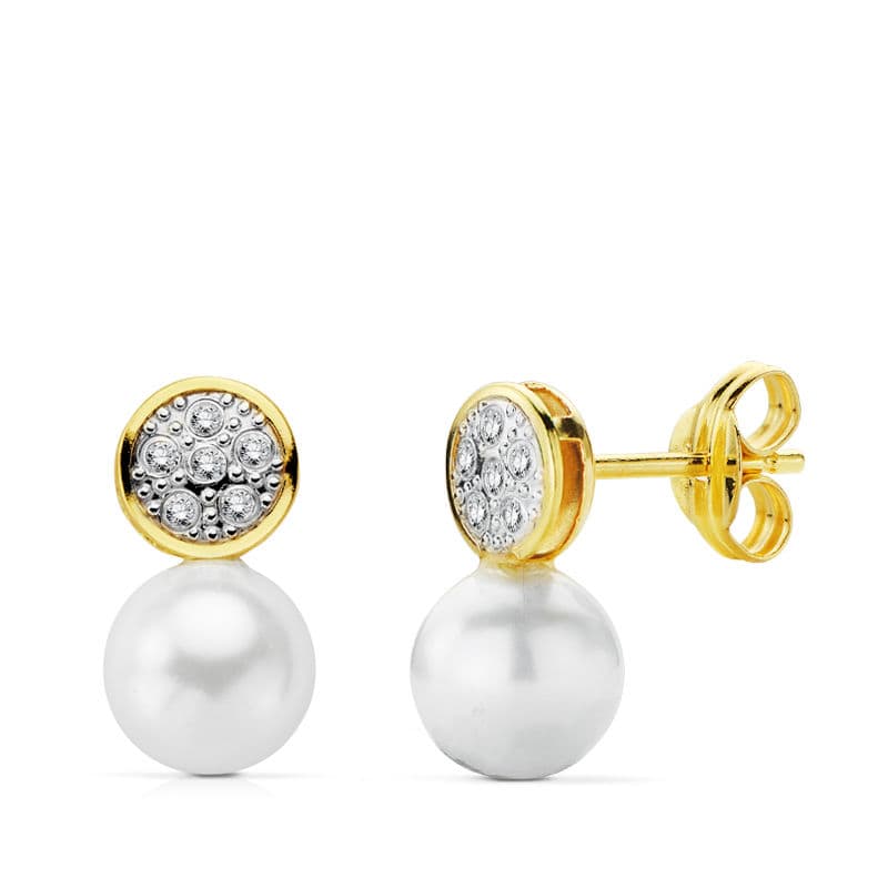 18K PENDIENTES COMUNION CIRCONITA PERLA 12X6 MM
