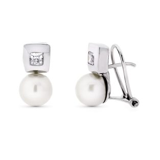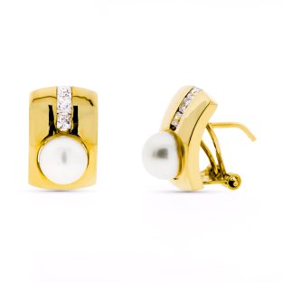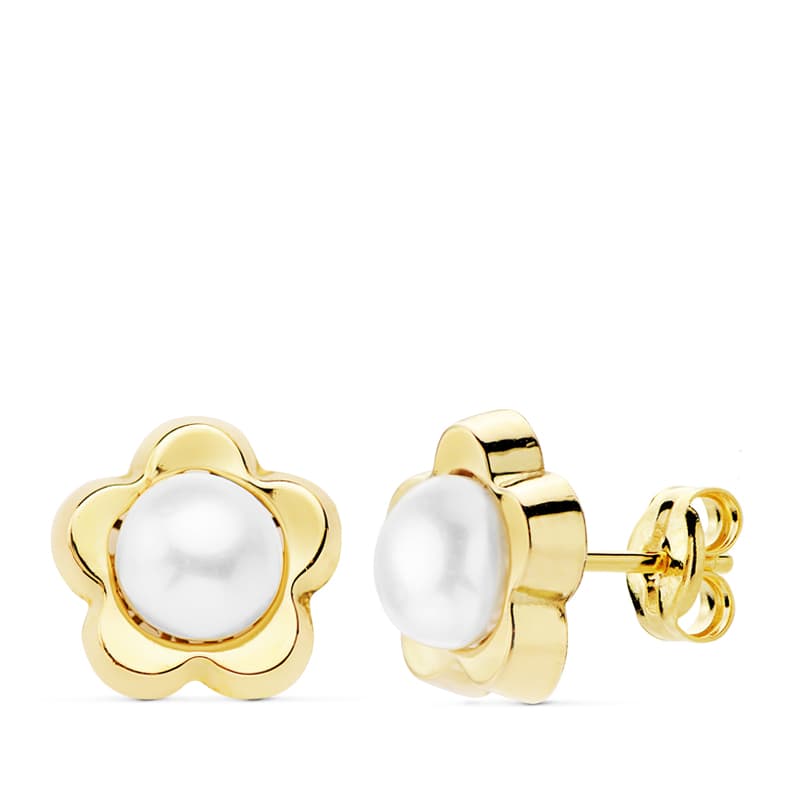 18K PENDIENTES FLOR PERLA 9X9 MM