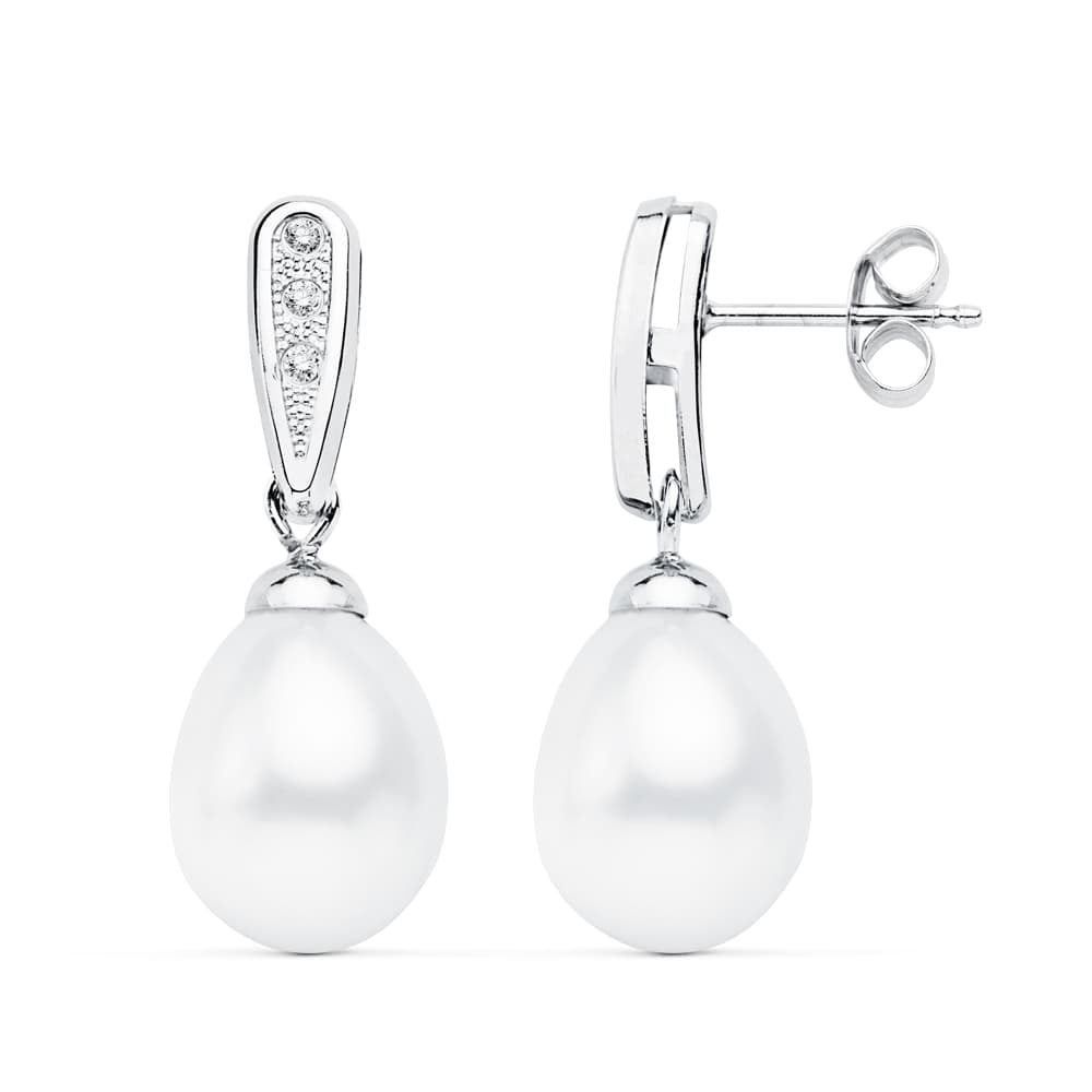 18K PENDIENTES ORO BLANCO DE NOVIA CON PERLA 24X9 MM CIERRE PRESION