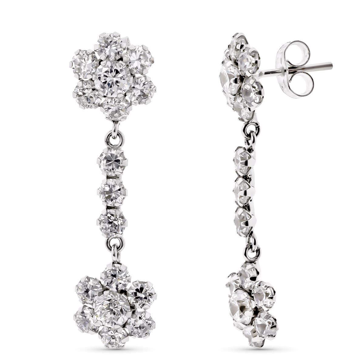 18K PENDIENTES ORO BLANCO DOS CUAJOS CON CIRCONITAS CIERRE PRESION