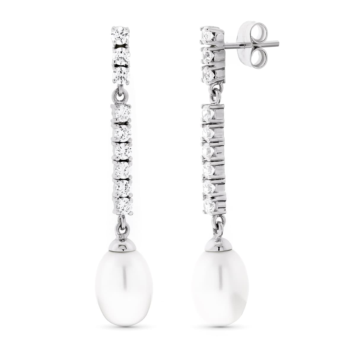 18K PENDIENTES ORO BLANCO LARGOS PERLA CULTIVADA PRESION
