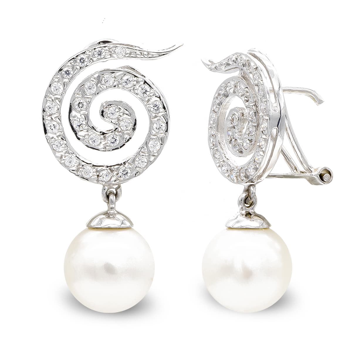 18K PENDIENTES ORO BLANCO LARGOS Y PERLA 10 MM