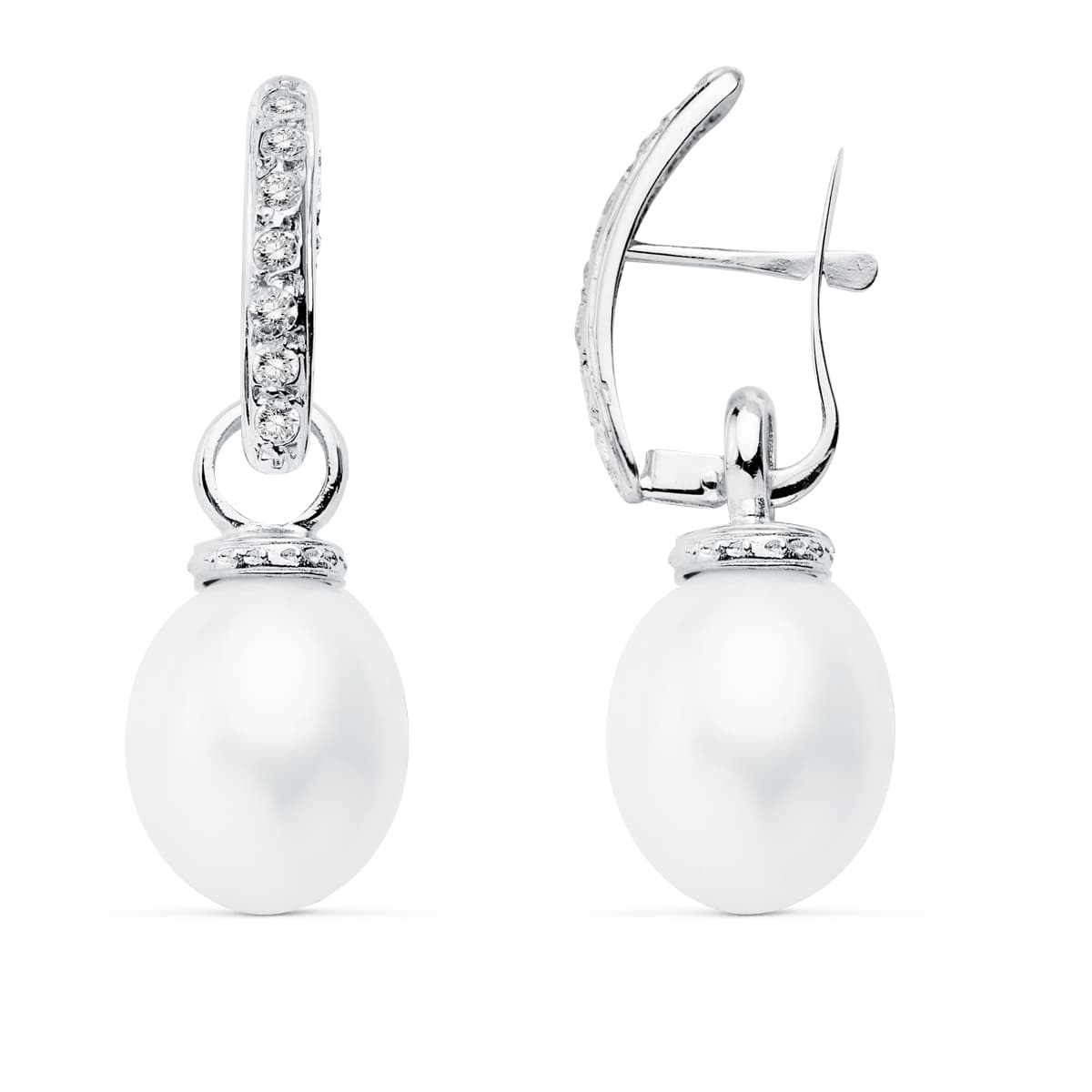 18K PENDIENTES ORO BLANCO PERLA 30X10 MM