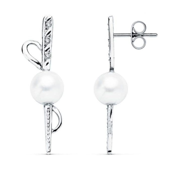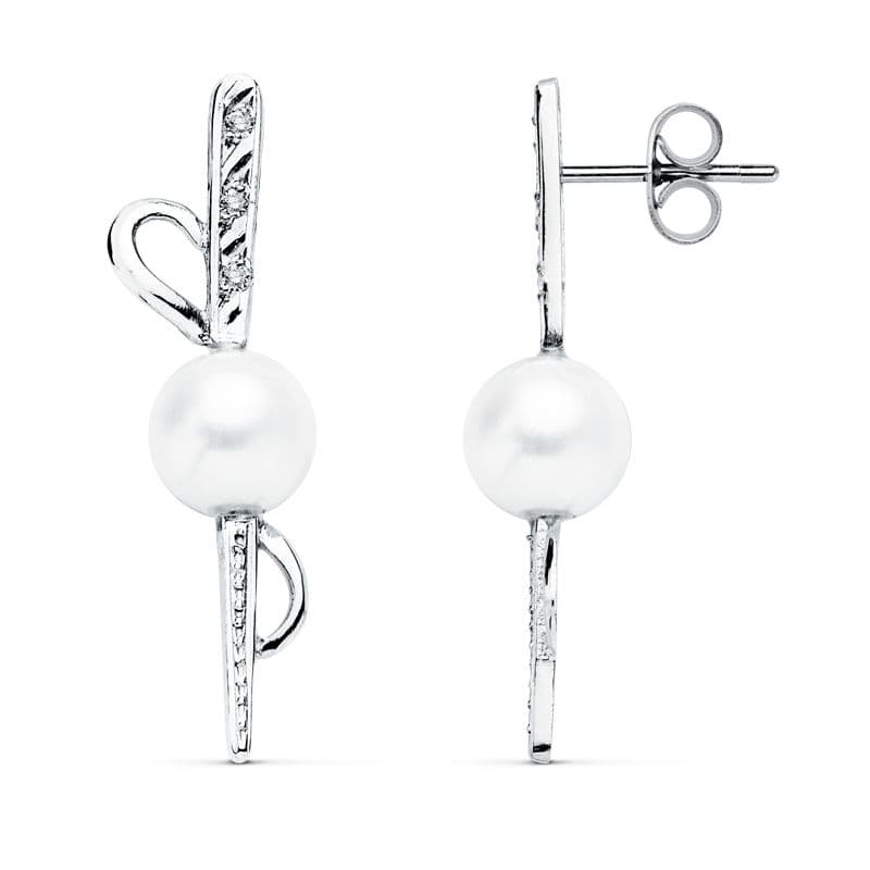 18K PENDIENTES ORO BLANCO PERLA 30X9 MMPRESION
