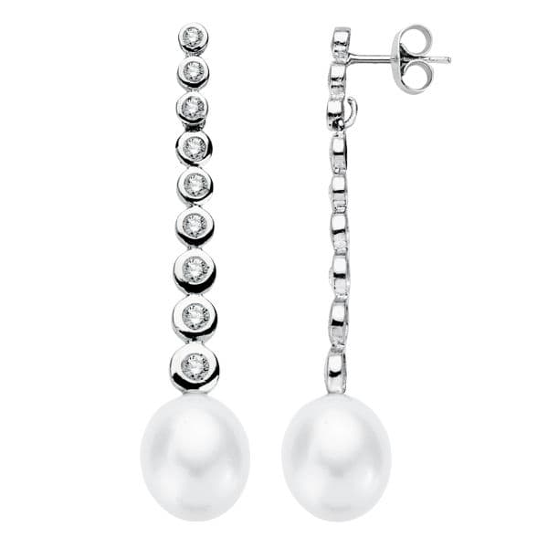 18K PENDIENTES ORO BLANCO PERLA 40X8 MM