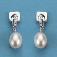 18K PENDIENTES ORO BLANCO PERLA Y CIRCONITAS PRES