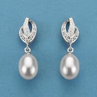 18K PENDIENTES ORO BLANCO PERLA Y CIRCONITAS PRES