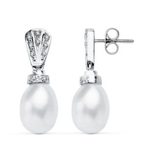 18K PENDIENTES PERLA CULTIVADA 7 MM 13X7 MM