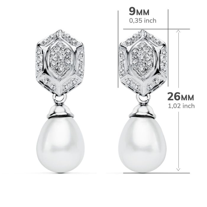 18K PENDIENTES PERLA ORO BLANCO CIRCONITAS PRESION