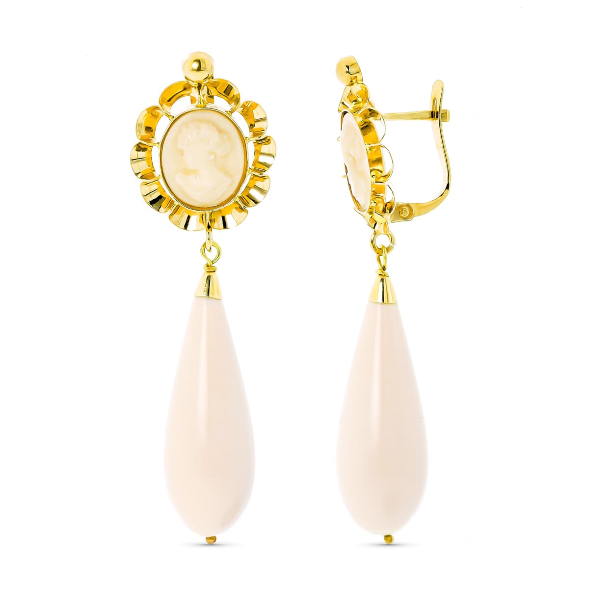 18K PENDIENTES CAMAFEO MARFIL 47 X 14 MM