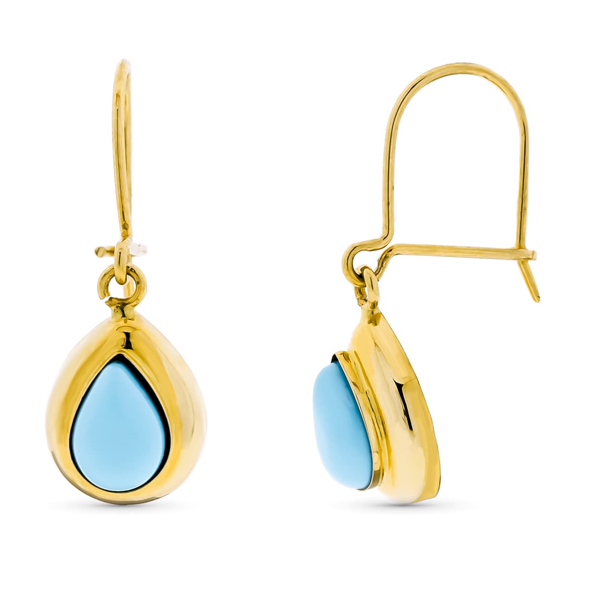 18K PENDIENTES ORO AMARILLO LARGOS TURQUESA GOTA 7X5 MM