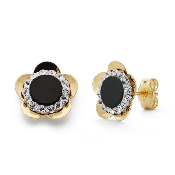 18K PENDIENTES FLOR ONIX 10X10 MM PRESION