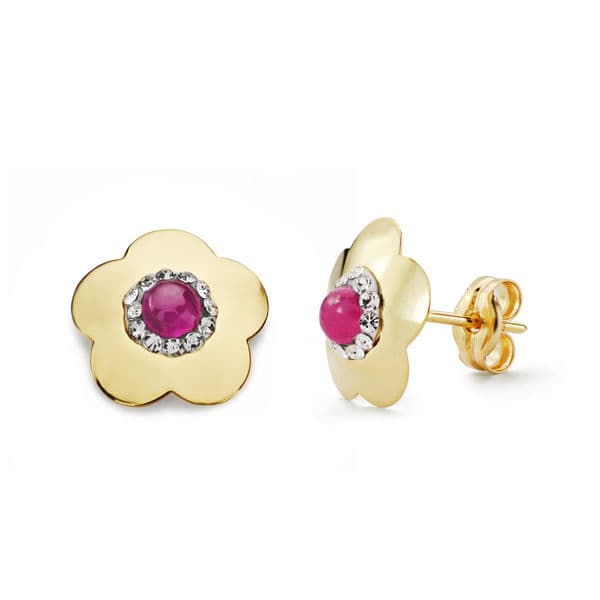 18K PENDIENTES FLOR RUBI. 9X9 MM