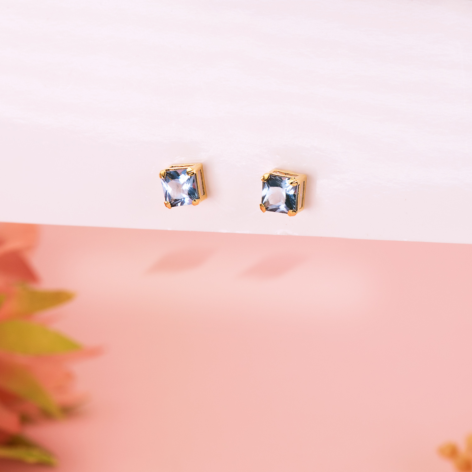 18K PENDIENTES ORO AMARILLO CUADRADOS PIEDRA COLOR AGUAMARINA 5,5 X 5,5 MM. CIERRE PRESION
