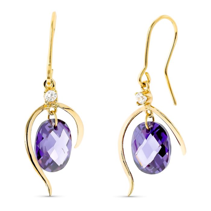 18K PENDIENTES ORO AMARILLO LARGOS AMATISTA 10X8 MM CIRCONITA