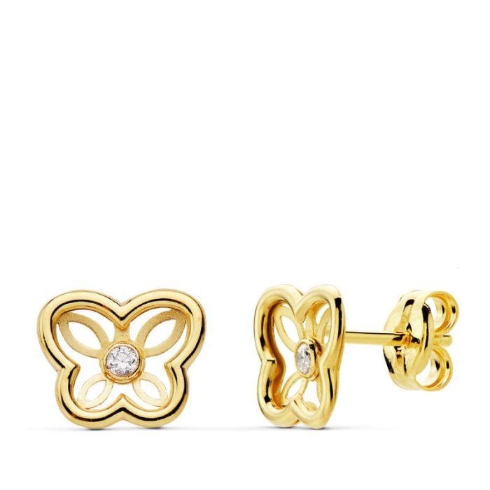 18K PENDIENTES ORO AMARILLO MARIPOSA CALADA 8X7 MM