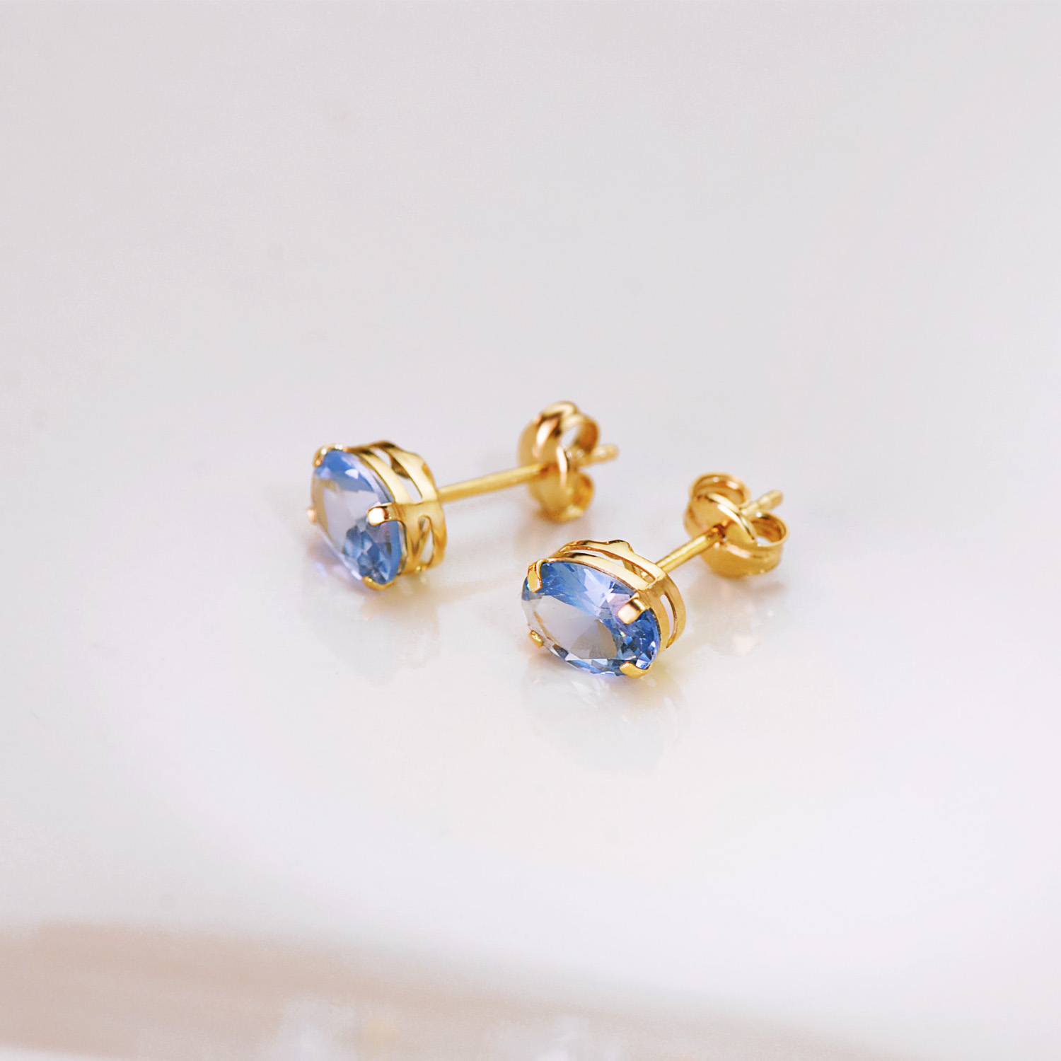 18K PENDIENTES ORO AMARILLO OVAL PIEDRA AZUL 7 X 5 MM. CIERRE PRESION